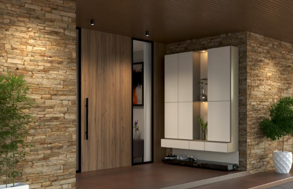 A smart, space-efficient solution for compact homes or contemporary interiors. Sliding wooden main doors provide a seamless transition between indoors and outdoors while keeping the aesthetic polished.